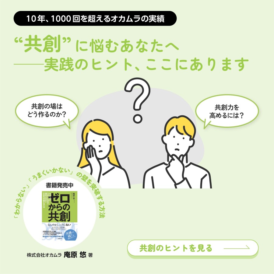 などの言葉を聞くことが少なくありません。共創という言葉の意味があやふやなまま利用されているケースが多いからであり、共創の考え方と活動の本質を理解している人が、じつはあまり多くいないからではないでしょうか。